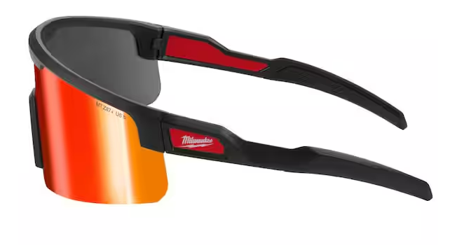 Safety Glasses with Red Wrap Around Mirrored Anti-Scratch Lenses