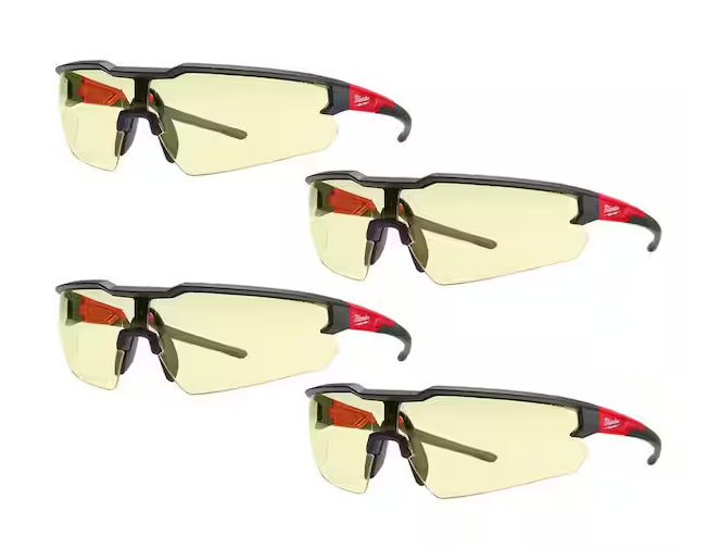 Safety Glasses with Yellow Anti-Scratch Lenses (4-Pack)