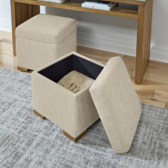Storage Ottomans Upholstered in a Taupe Linen Fabric