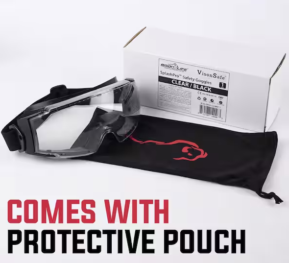 SplashPro Safety Goggles deliver comprehensive eye protection with an expansive 180° panoramic lens design that captures peripheral vision while shielding side areas from hazards. The oversized frame accommodates prescription glasses seamlessly, featuring a cushioned nose bridge for extended wear comfort. Advanced anti-fog technology and strategic ventilation channels maintain optical clarity, while UV 400 filtration minimizes glare and reduces eye strain during prolonged exposure. Engineered with impact-resistant polycarbonate lenses and a reinforced TPR frame, these goggles withstand demanding environments including laboratories, construction sites, and industrial workshops. An adjustable elastic strap ensures a secure, customizable fit that remains stable throughout extended use. Ideal for diverse applications—from chemical handling and pressure washing to painting and debris-heavy tasks—this protective eyewear combines durability with reliable splash and dust defense.