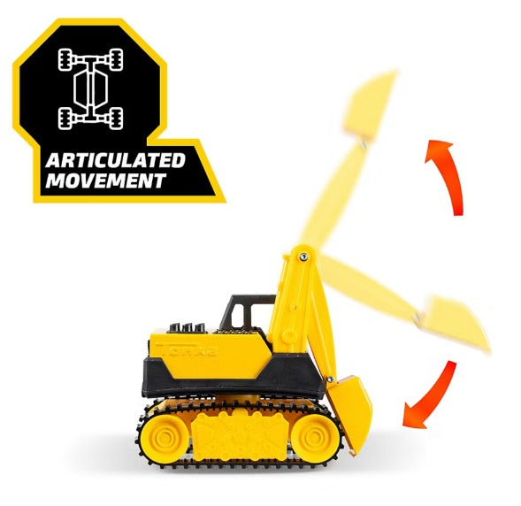 - Real working dump bed: Load, haul, and dump with ease. Movable grapple bucket: Push, dig, and clear with the working grapple bucket. Movable scooping crane and rotating cabin