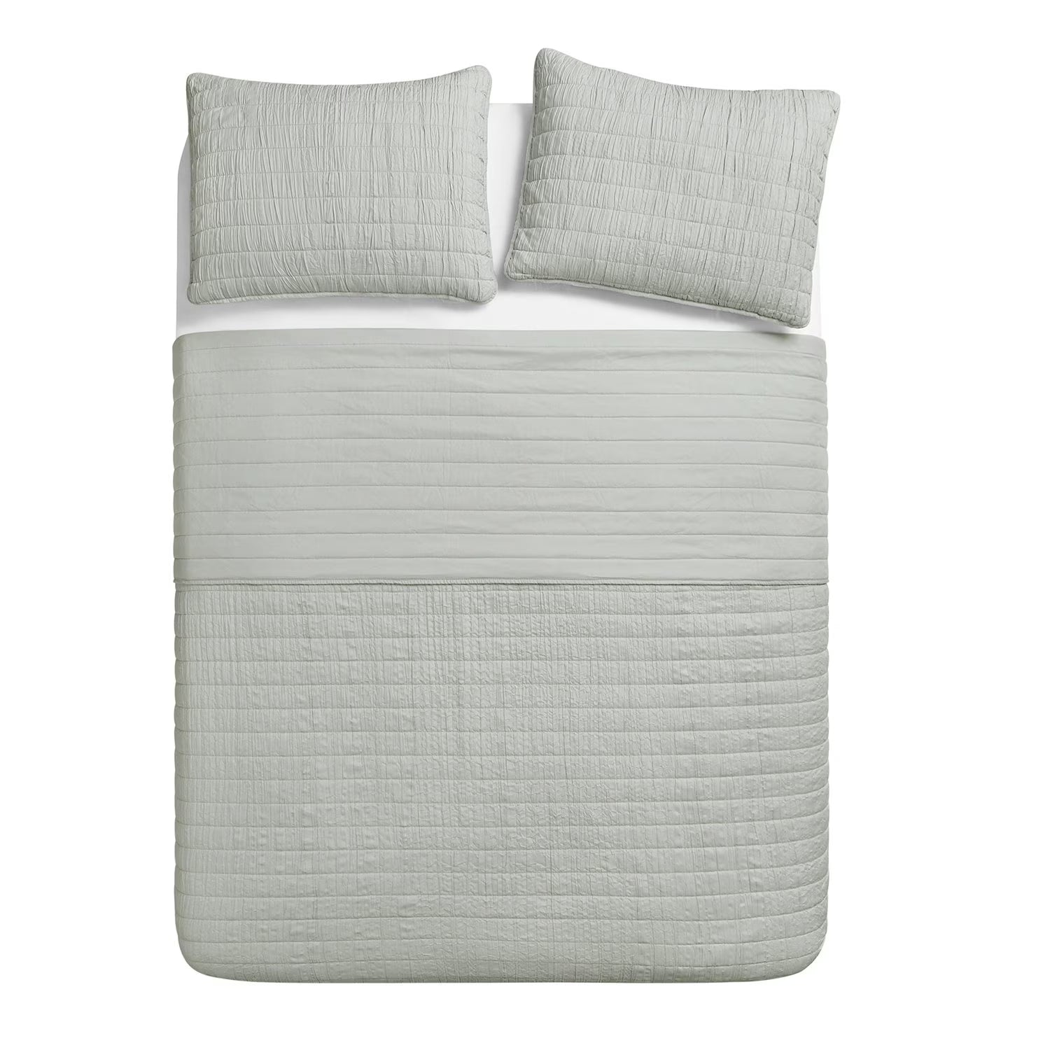 Crafted of enzyme-washed microfiber, the quilted design adds a layer of textural comfort to your bed to match any aesthetic. Pre-washed for extra softness and finished with a crinkle texture, pair the coverlet with the coordinating pillow sham for a luxurious look.
