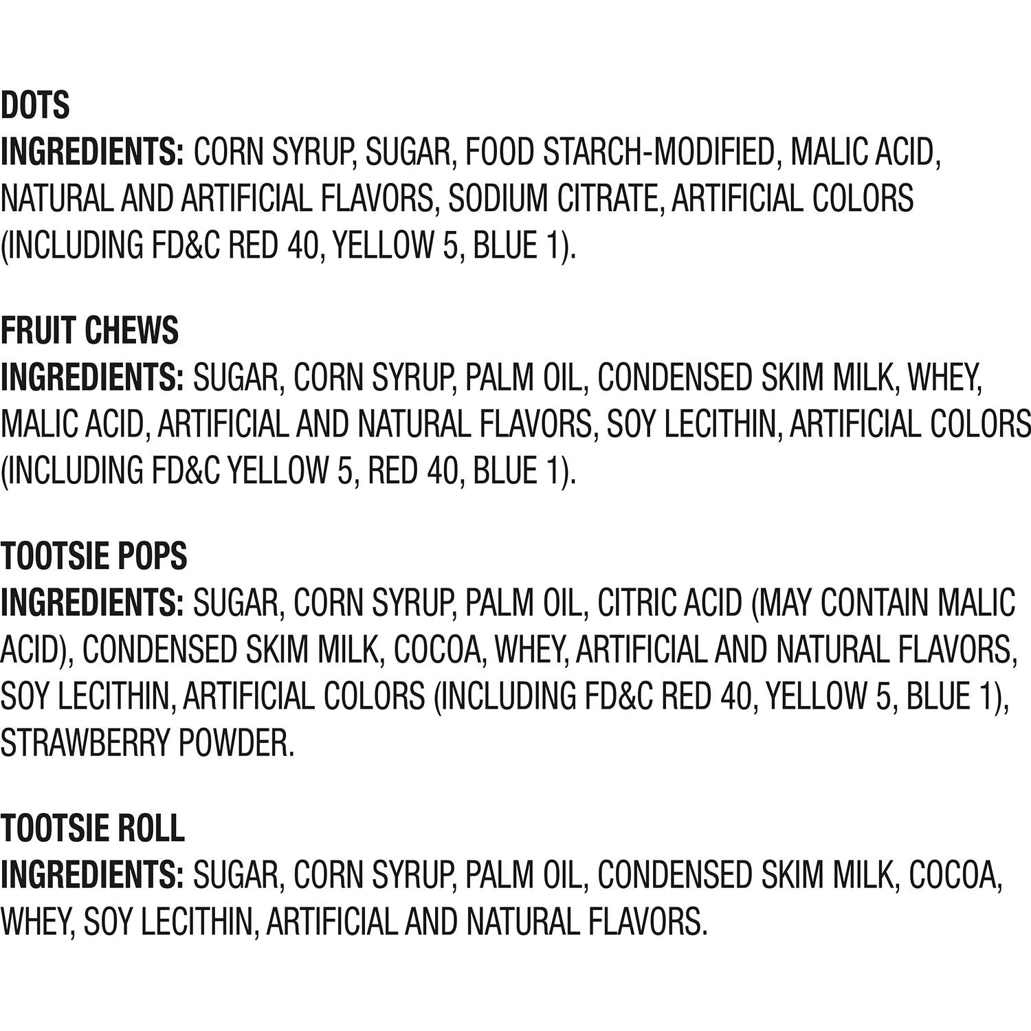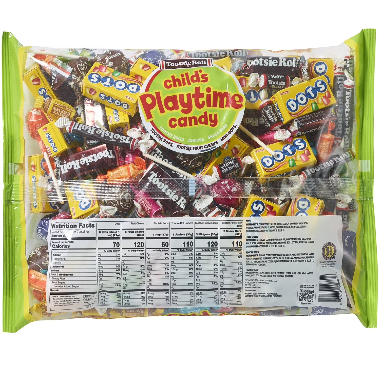 - Includes Tootsie Rolls Juniors, Tootsie Pops, Tootsie Fruit Chews, Tootsie Snack Bars, and Mini Dots
