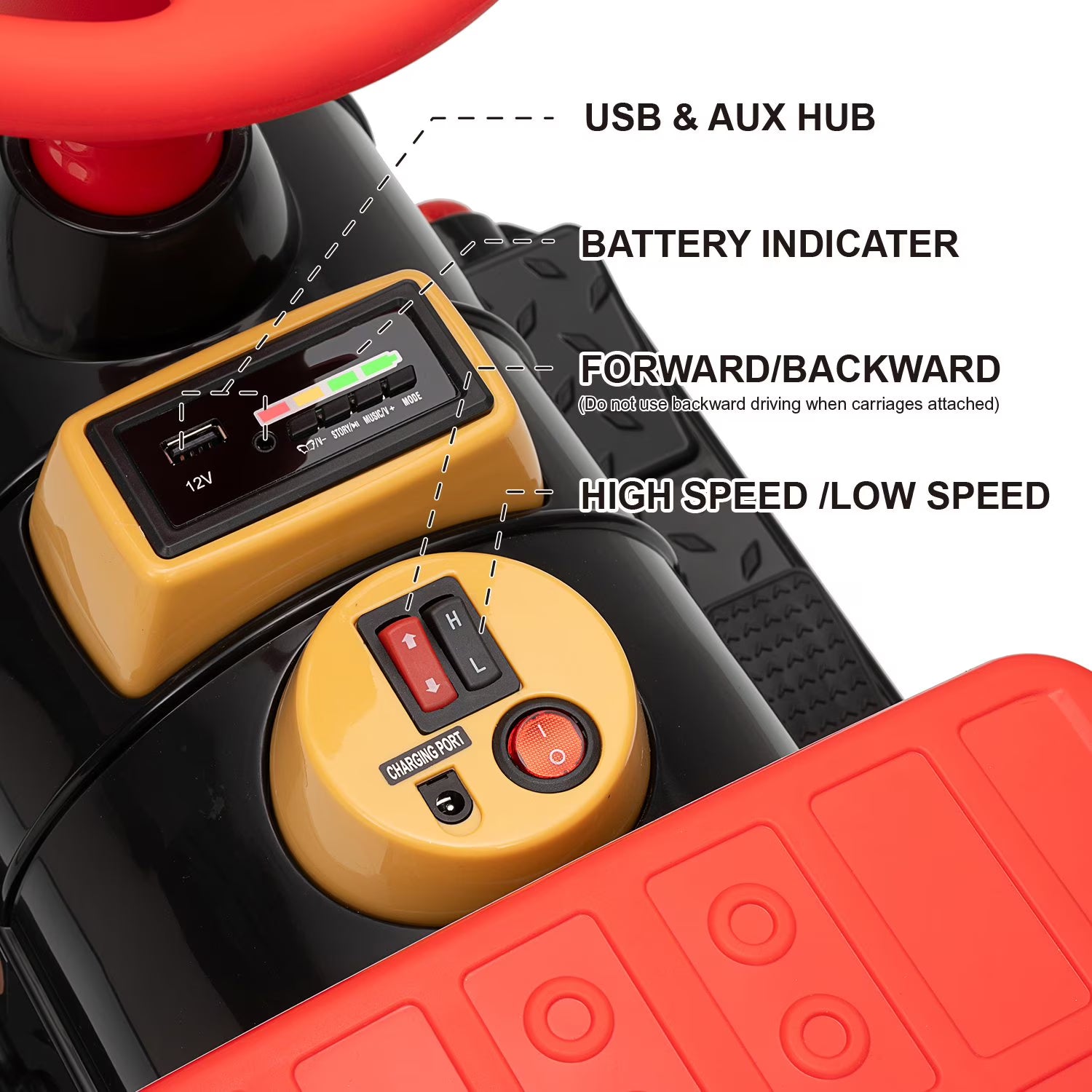 - Train Whistle & Built-in MP3 Player & Working Headlight & Two Carriages with Extra Storage Space