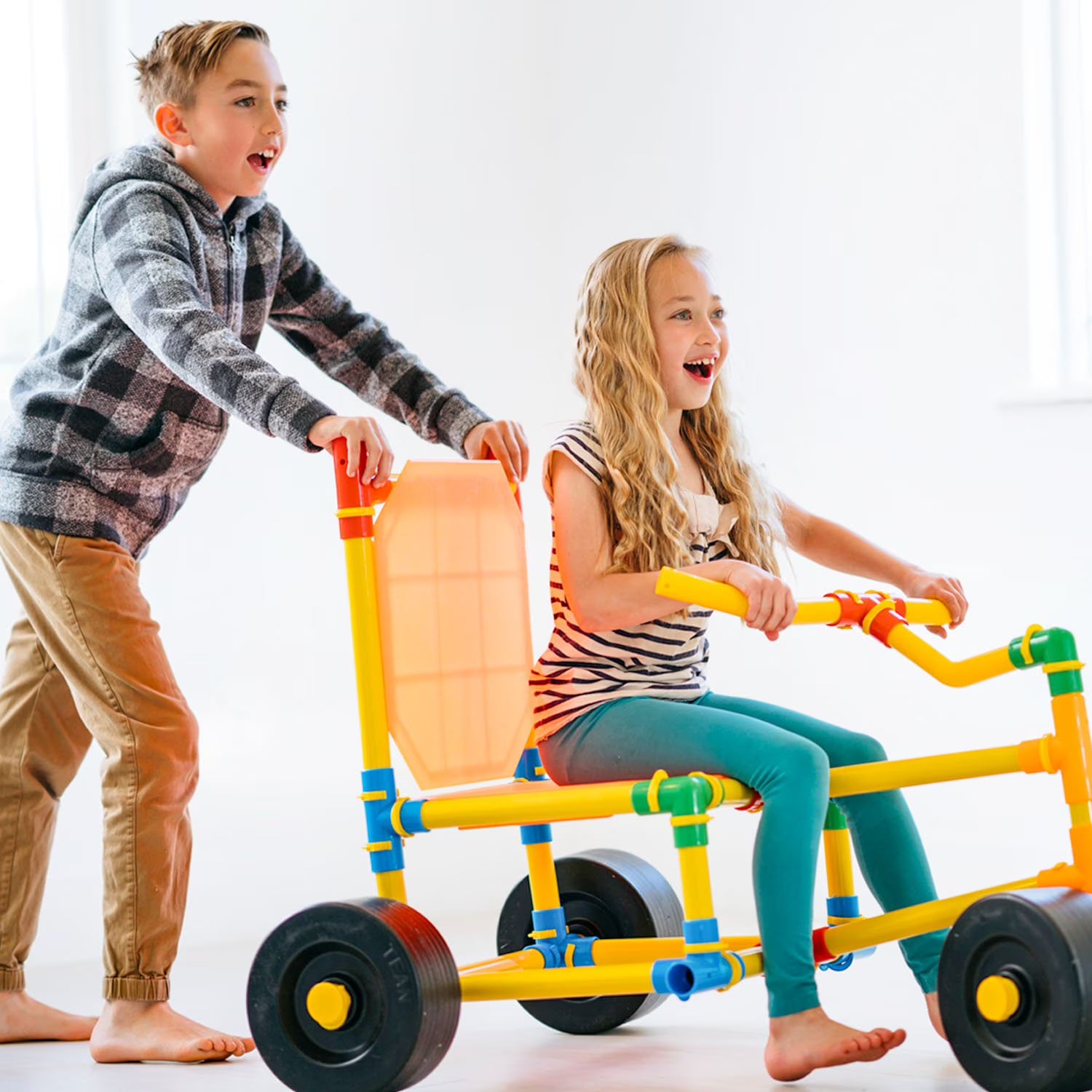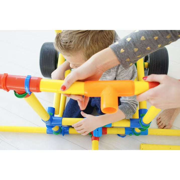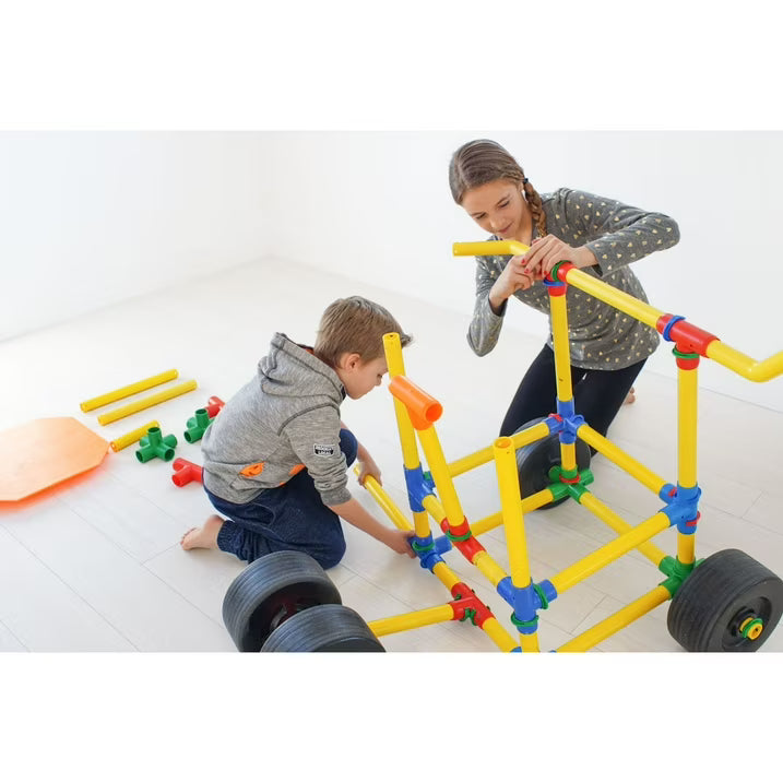 This comprehensive 120-piece TubeLox Standard Set includes tubes, colorful connectors, and locking adapter clips that ensure sturdy, stable constructions surpassing typical building toys. Essential wheels and panels inspire children to design vehicles they can race around, encouraging active play. TubeLox fosters collaboration among friends and family, promoting social skills, patience, and teamwork through shared building experiences. Perfect for creating tunnels, forts, vehicles, and sports equipment, it supports physical activity alongside creative construction. This toy develops imagination, engineering skills, spatial awareness, and fine motor control, benefiting cognitive growth and self-confidence for children aged 3 and up.