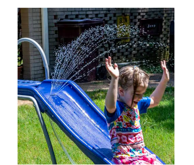 - Built-in adjustable water sprinkler ensures a refreshing splash with every slide, offering hours of aquatic fun