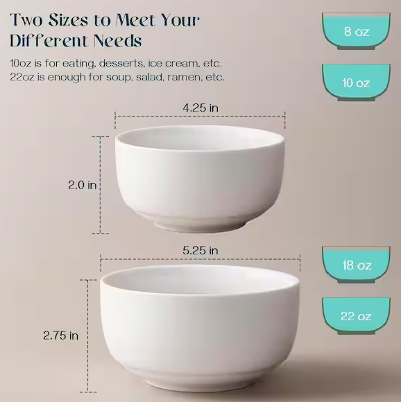 - Crafted from premium lead-free, non-toxic porcelain fired at high temperatures, these bowls offer chip-resistant and anti-scratch durability, resisting corrosion and acids for long-lasting quality