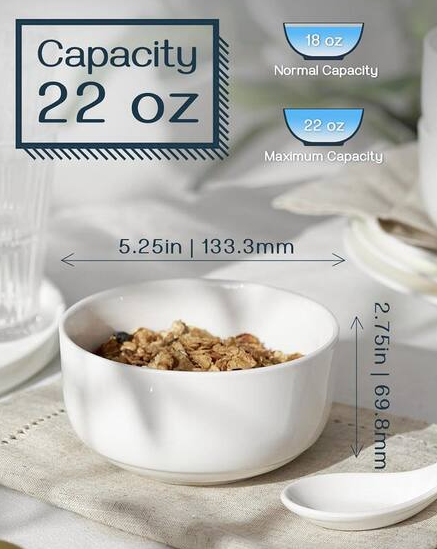 - With a diameter of 5.25 in. and height of 2.75 in. these bowls hold 22 oz. perfect for cereal, soup, ice cream, and sides, ideal for home, parties, and restaurant use with versatile style