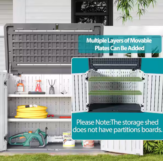 Multi-purpose storage - its huge capacity is perfect for storing gardening tools, barbecue grills, firewood, seat cushions, children's toys, etc. for outdoor storage needs