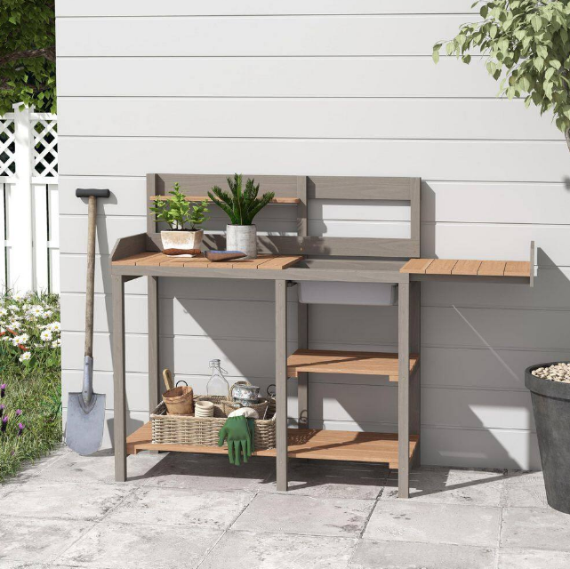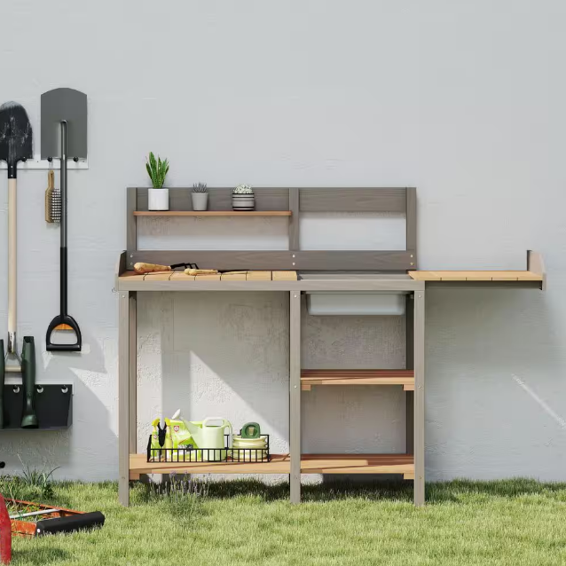 - Potting bench offers a functional and stylish solution for any gardener, combining workspace with storage in a weather-resistant design
